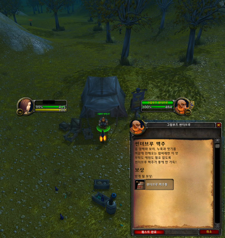 퀘 보상으로 받는 썬더브루 맥주통 은 나중에 필요한 퀘템이므로 보관해야한다.