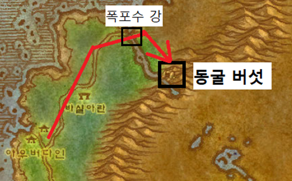 1. 아우버다인에서 귀환석을 찍은 다음 [어둠에 해안에 생긴 문제 를 완료] 받고 <<동굴 버섯>>을 받는다.