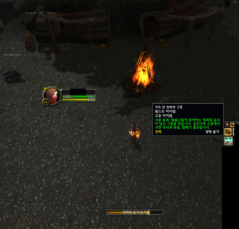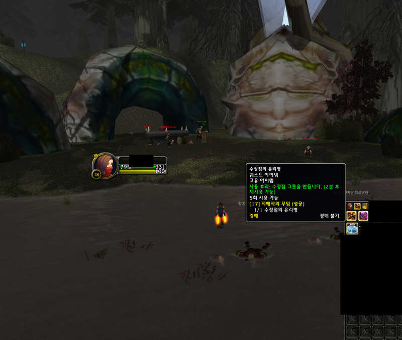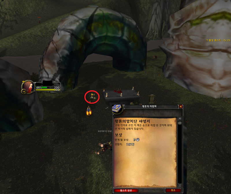 수정점 그릇을 클릭하여 [지배자의 무덤 을 완료] 받고 <<황혼망치단 야영지>> 를 받는다.
