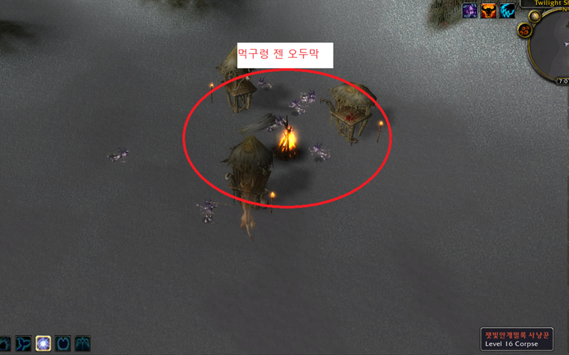 <먹구렁이 없다면, 오두막 근처 멀록을 모두 잡아서 젠을 시키면 된다.>