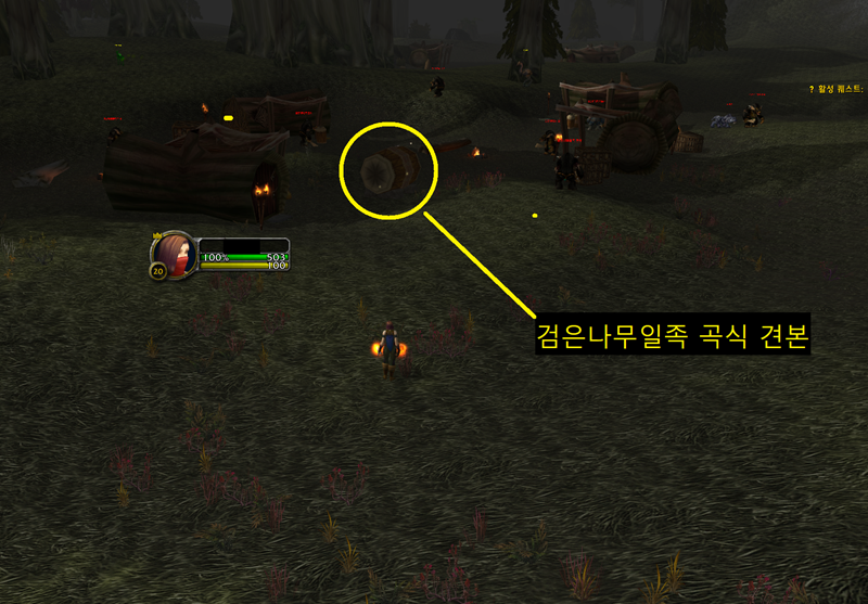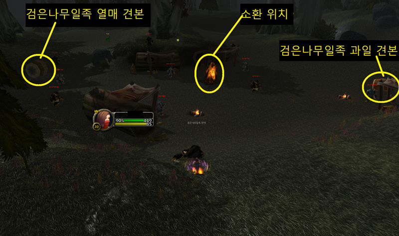 1. 아우버다인 북동쪽에 있는 검은나무일족 야영지 로 이동하여 타락한 검은나무일족 을 수행한다.