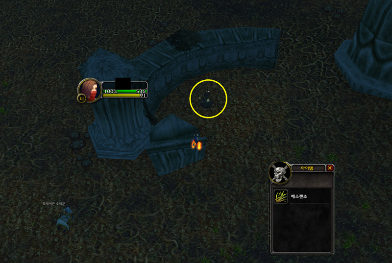 <사브라시스를 처치하면 바닥에 바구니가 생성된다. 바구니를 클릭하여 부패의 부적을 획득하자.>