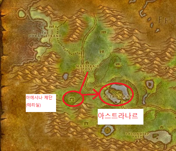 1. 아스트라나르 로 이동하여 그리핀을 찍고 [잿빛 골짜기를 향한 전진(불성퀘) / 오렌딜의 치료제 를 완료] 받고