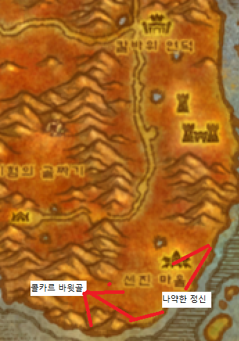 1. 칼바위 언덕 으로 귀환하여 <<호드의 징병>> 을 받고 서쪽에 위치한 호드 전초기지 로 이동한다.