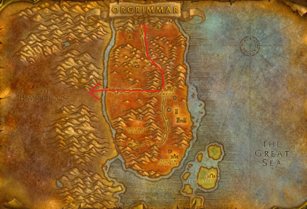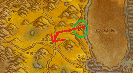 여기에서 [호드의 징병 을 완료]받고 <<크로스로드의 징병>> 을 받은 뒤, 길을 따라서 크로스로드 로 이동한다.