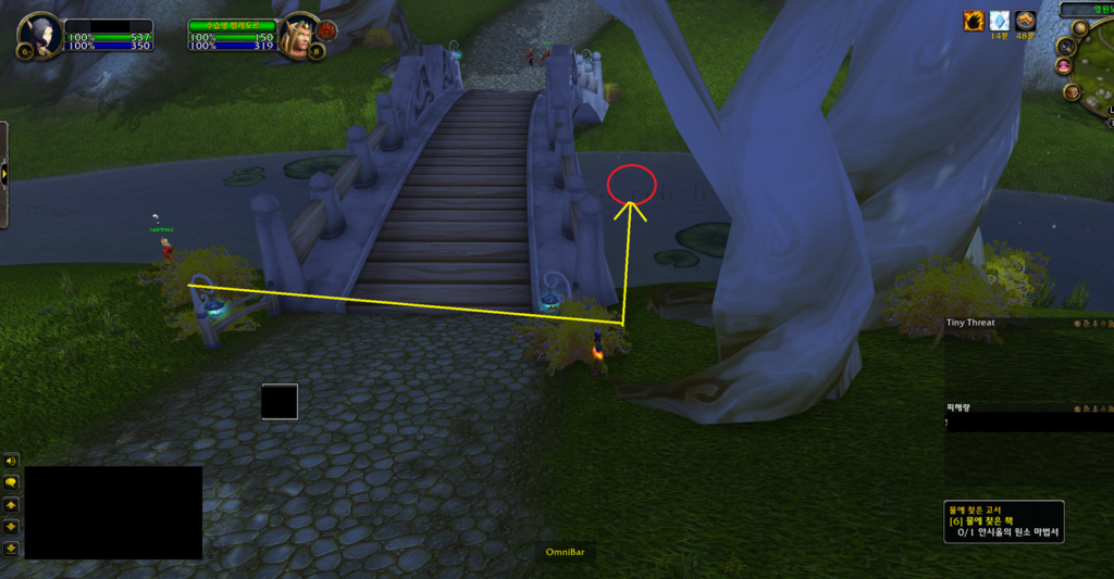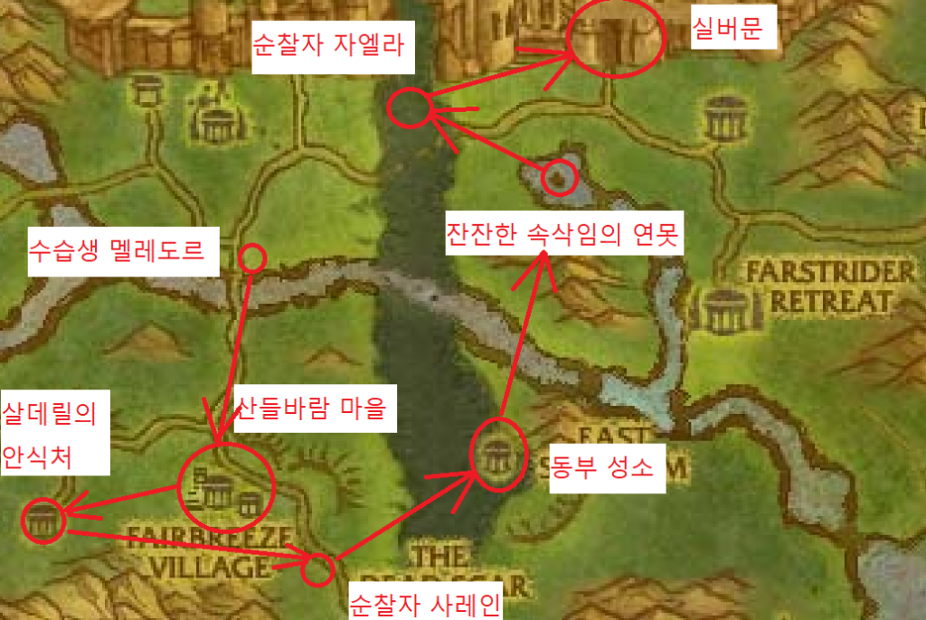 2. 잔잔한 속삭임의 연못 으로 이동하여 [따끔한 교훈 을 완료]받는다.