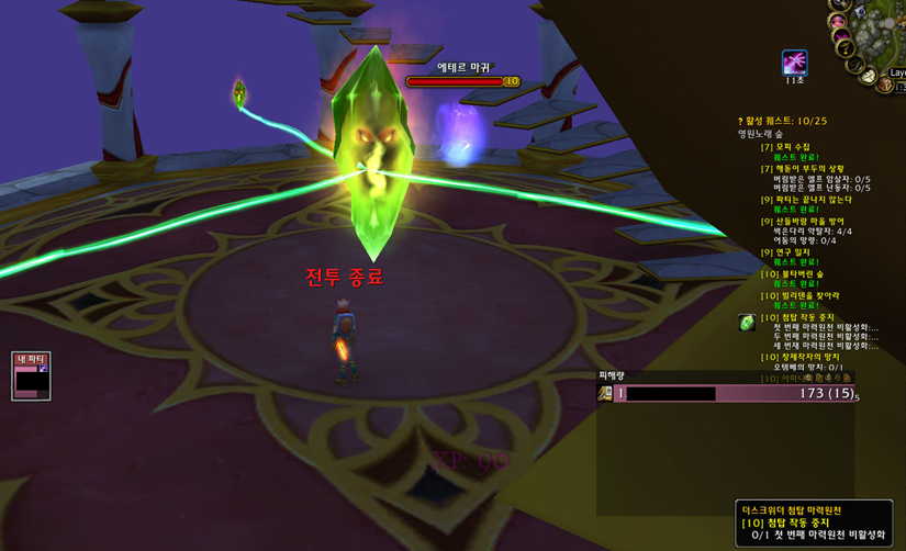 5. NPC에게 돌아와서 [불안정한 성소 / 나이트엘프의 침입 을 완료]받는다.