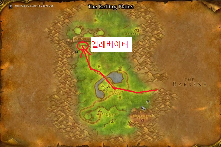 10. 마법사를 찾아서 포탈을 타거나 육로를 통해 썬더 블러프 로 이동한다.