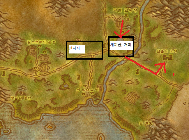 5. 타렌 밀농장 서쪽 주변에 넓게 분포 되어있는 산사자를 잡아 고통의 비약 을 완수한다.