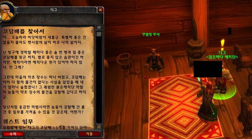 4. 그롬골 주둔지로 돌아와 [모크타르딘의 마법(1)을 완료]받고 연퀘인 <<모크타르딘의 마법(2)>>을 받아준다.