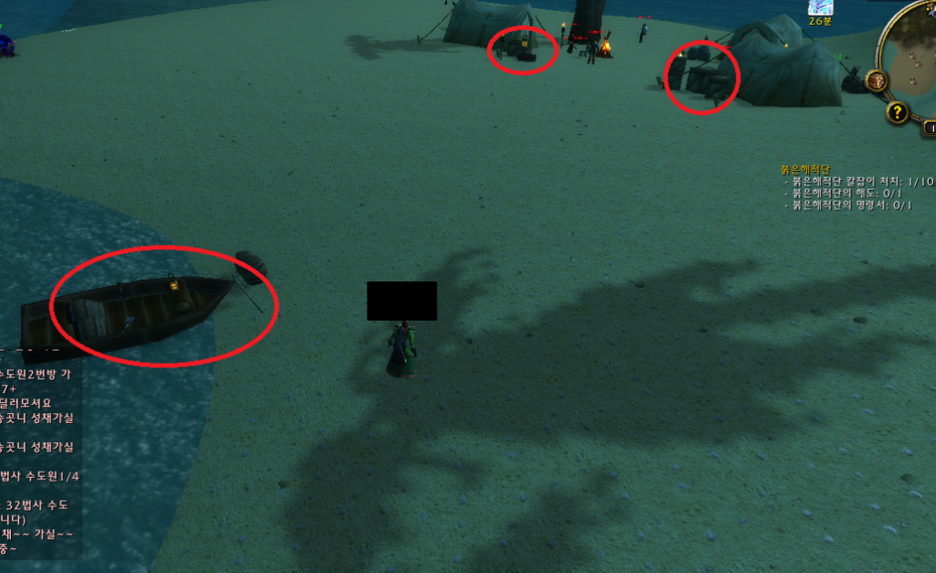 1. 무법항 밖으로 나와 오른쪽 해변가로 가서 붉은 해적단(4) / 코담배 / 디지의 눈을 수행한다.