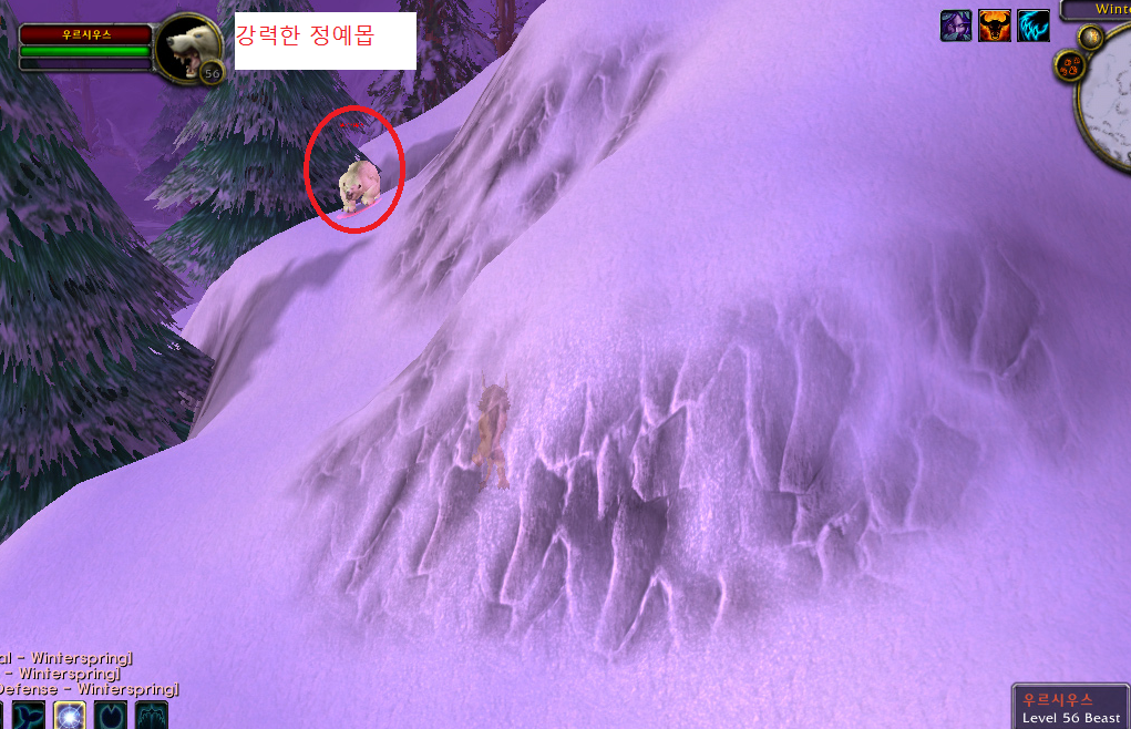눈망루 마을 북쪽 에 위치한 산을 로밍 도는 우르시우스 를 잡고 돌아와서 [퀘를 완료]받는다.