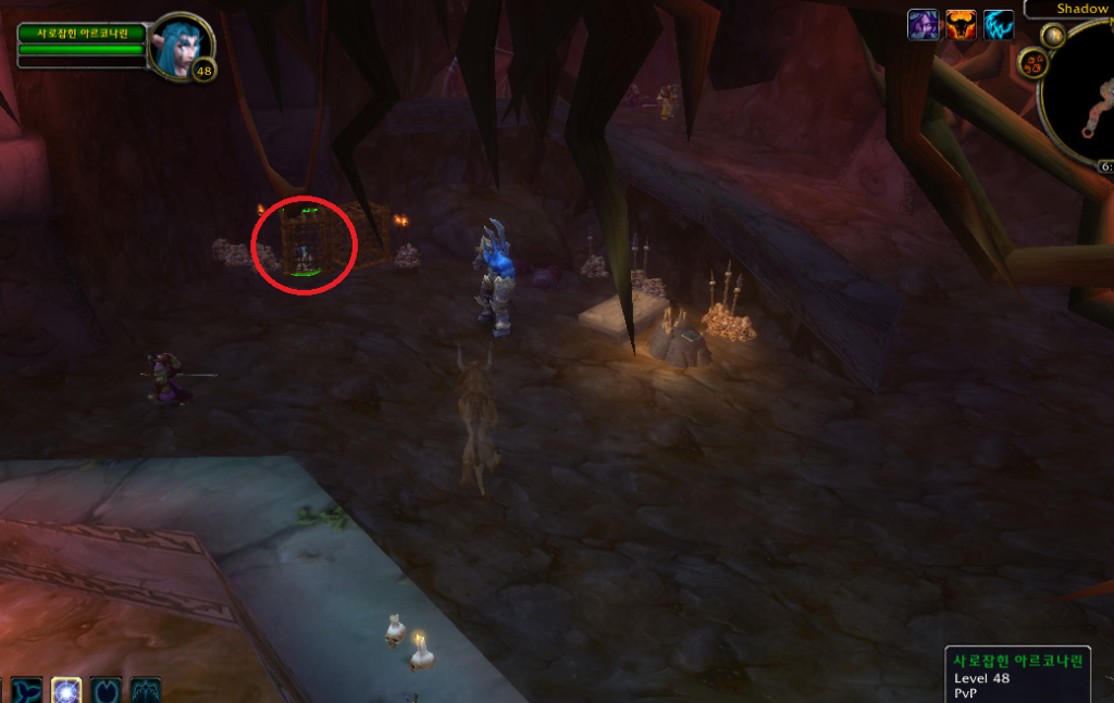 2. 자에데나르 로 이동하여 어둠의 요새 동굴 내부 에서 방어막 파괴 를 수행한다.