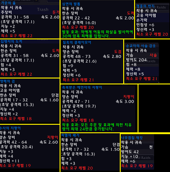 검은심연의 나락 드랍 아이템 목록