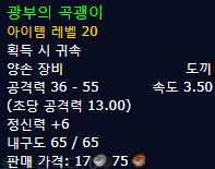 | 얼라 | 지하 공격 | 소리없는 쇼니 | 스톰윈드 (드워프 지구) (좌표 55, 13) |
