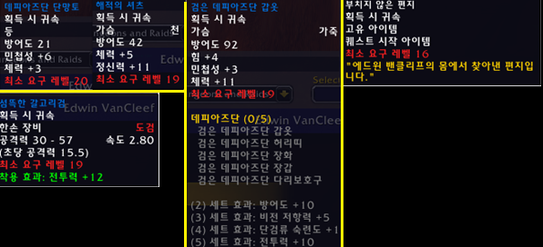 | 보스 | 드랍 | 데피아즈단(7) | 벤클리프의 가면 | 0/1 | 에드윈 벤클리프 드랍 |