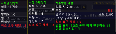 | 호드 | 성난불길 협곡의 트로그 | 네루 파이어블레이드 | 썬더 블러프 (70, 30) |