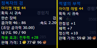 가시덩쿨 구릉 퀘스트 보상 아이템 목록